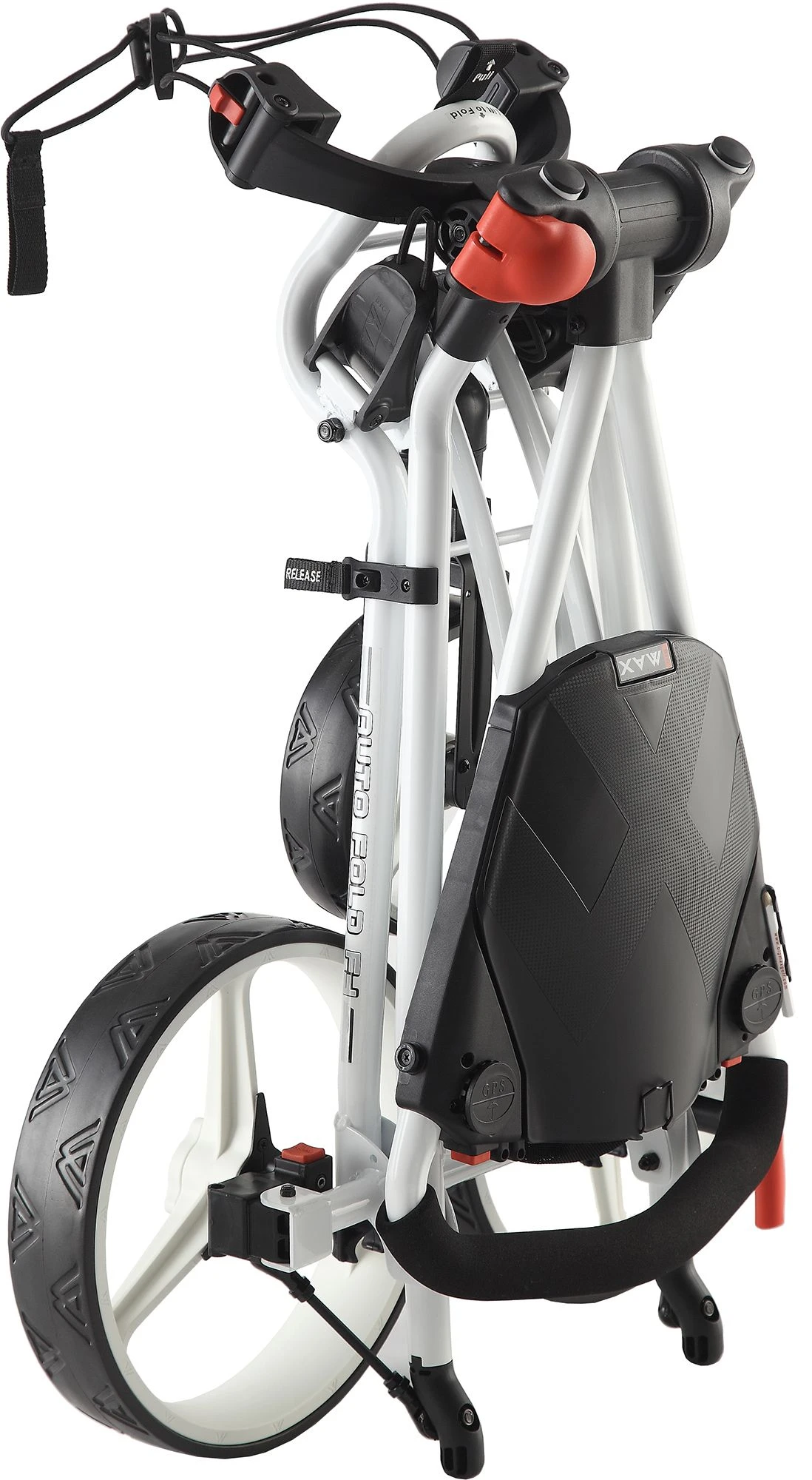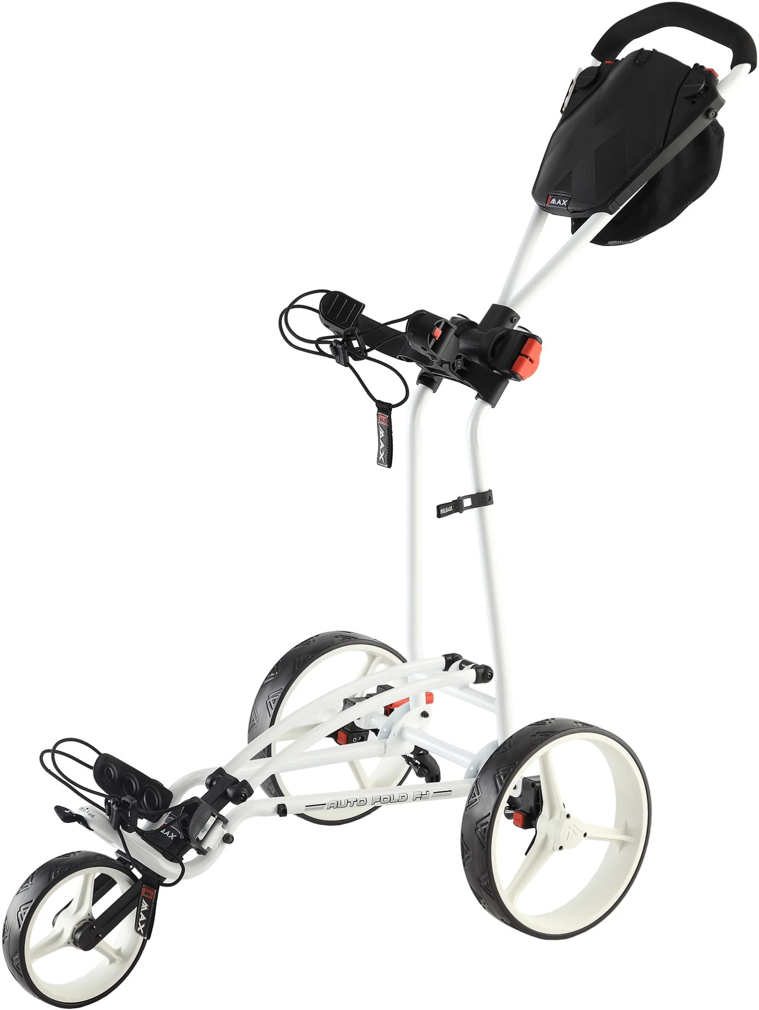 Raise your standard for well-rounded performance with the BIG MAX Autofold FF Push Cart. Ultra-fast flat-fold technology means it folds flat for convenient packing and storage in seconds, with all 3 wheels automatically folding down with a single hand movement. Straight-axle design promotes incredible stability when and where you need it most, while the adjustable brackets ensure any bag stays secure.