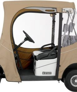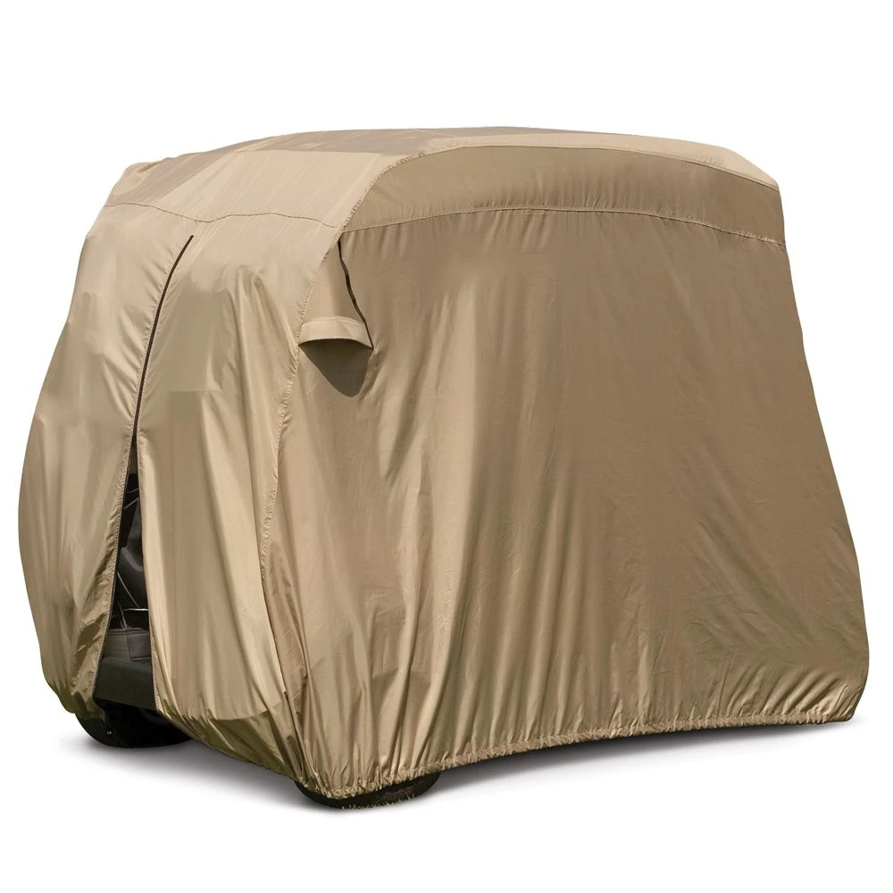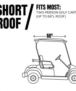 Protect your golf cart from sun, weather, and dirt with the Classic Accessories ® Golf Cart Easy-On Cover. This cover features rear air vents to reduce wind lofting and inside moisture so you have a clean and comfortable golf cart.