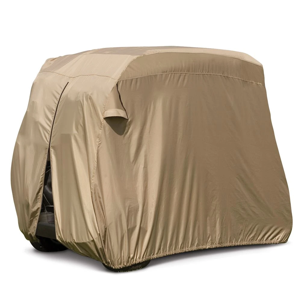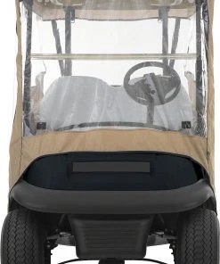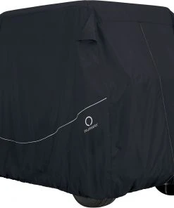 Protect your golf cart from sun, weather, and dirt with the Classic Accessories ® Golf Cart Easy-On Cover. This cover features rear air vents to reduce wind lofting and inside moisture so you have a clean and comfortable golf cart.