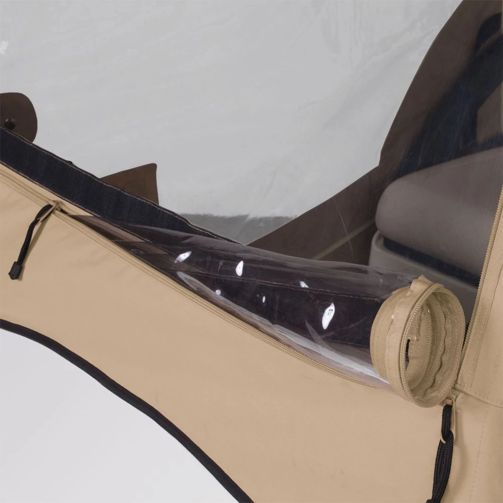 - Zippered doors and panels adjust quickly and easily to any weather condition