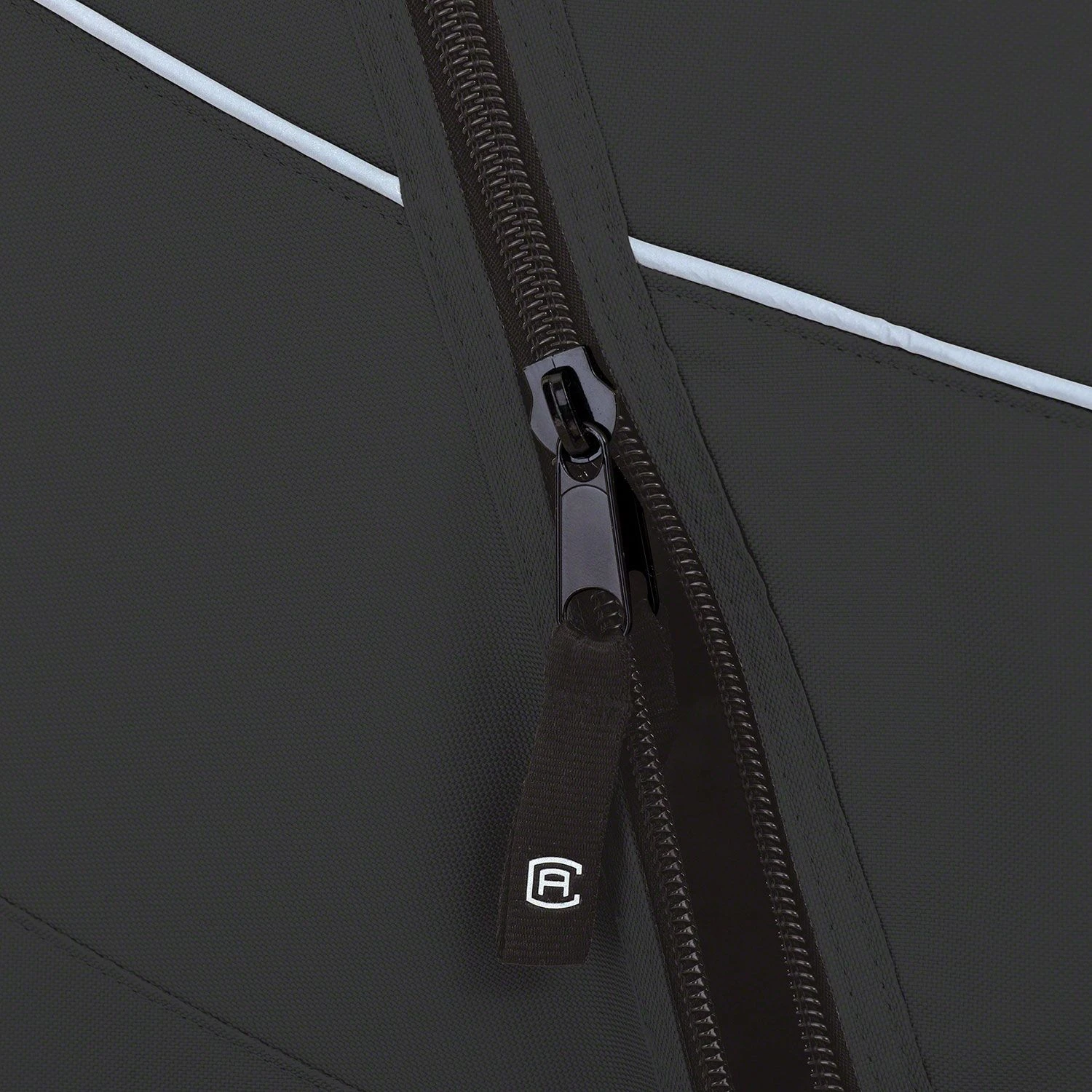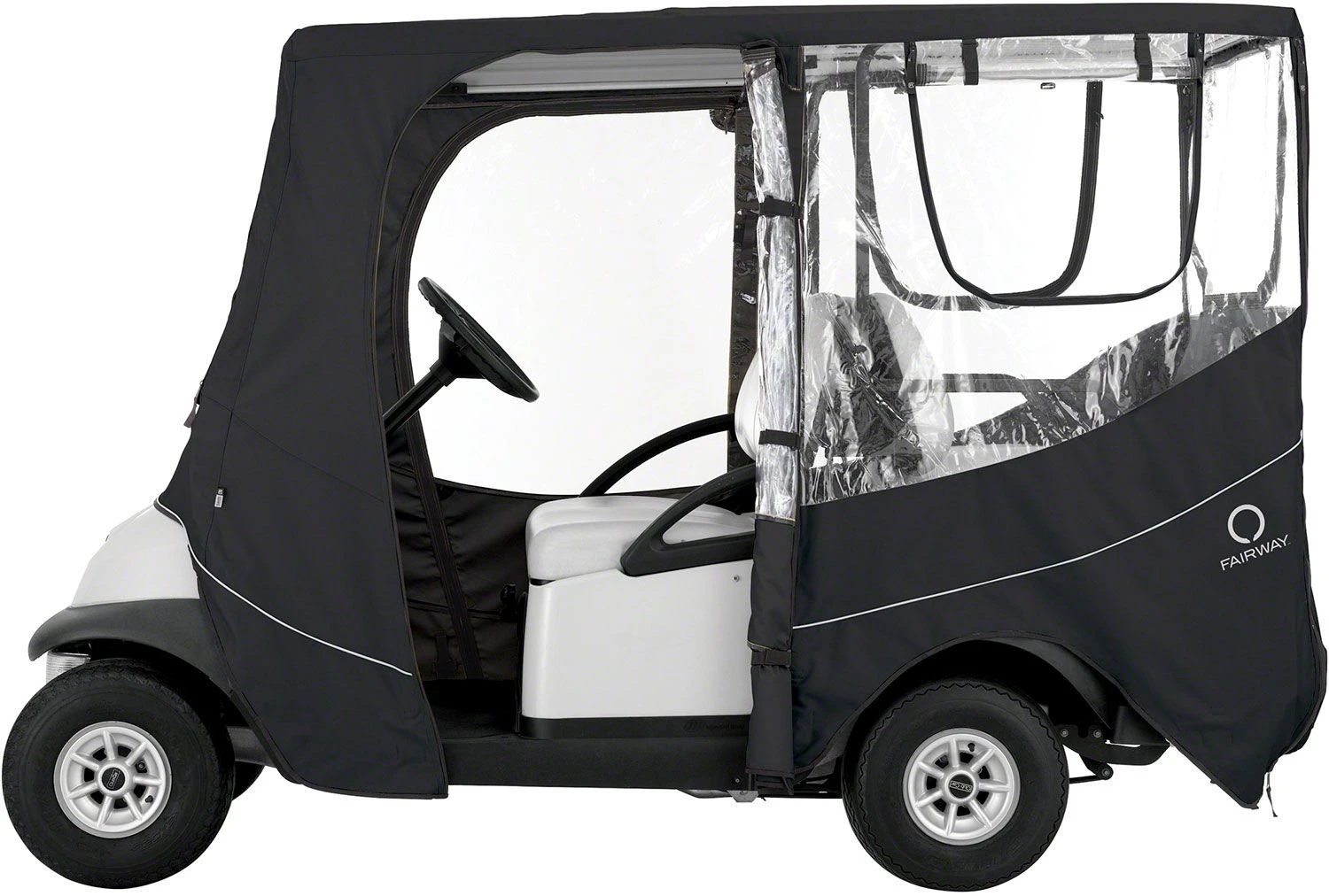 Block out the weather with the Fairway Deluxe Long Golf Cart Enclosure. Designed to fit most four-person carts with long roofs, this cover fits over the roof, secures at the bottom, and provides protection from inclement weather. Zippered doors and panels constructed of durable Gardelle™ fabric resist shrinking and stretching to ensure lasting protection. Cruise in comfort with the Classic Accessories® Deluxe Long Golf Cart Enclosure.
