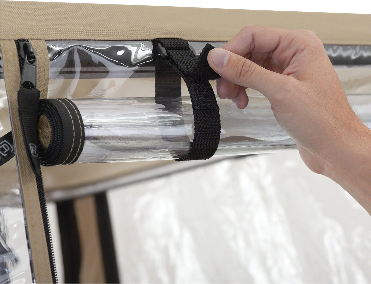 - Zippered doors and panels adjust quickly and easily to any weather condition