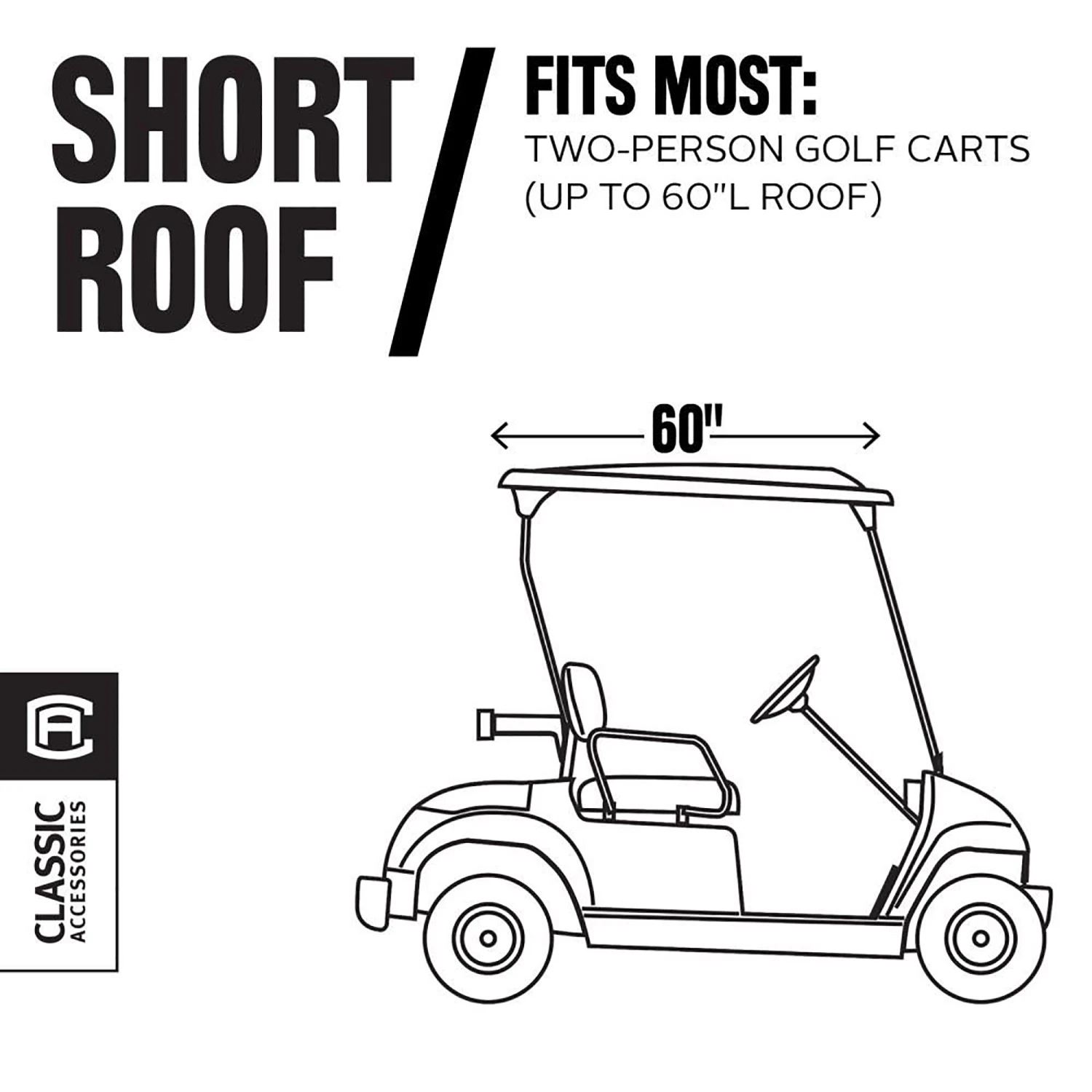 - Designed to securely fit most 4-person golf carts with long roofs