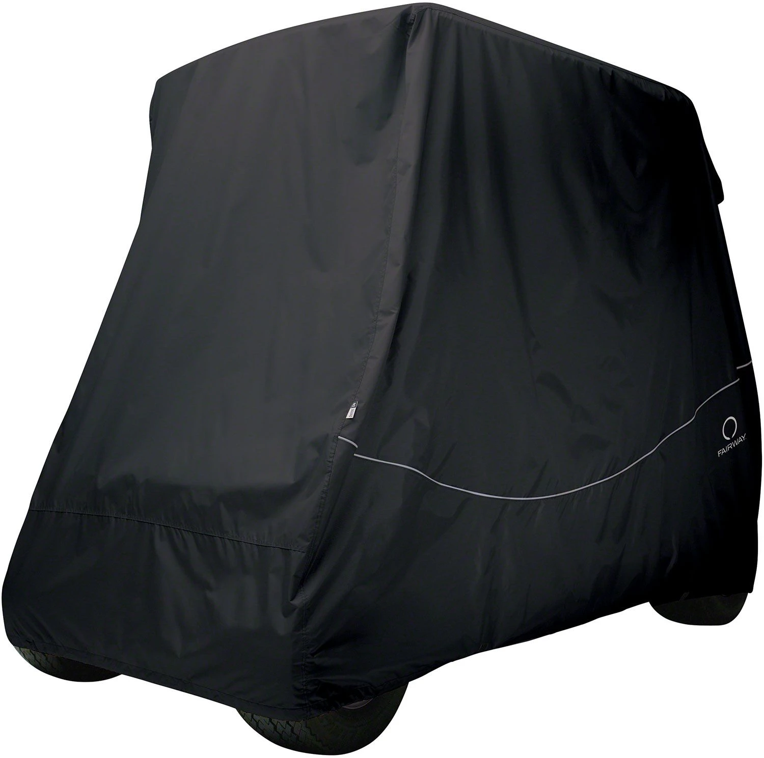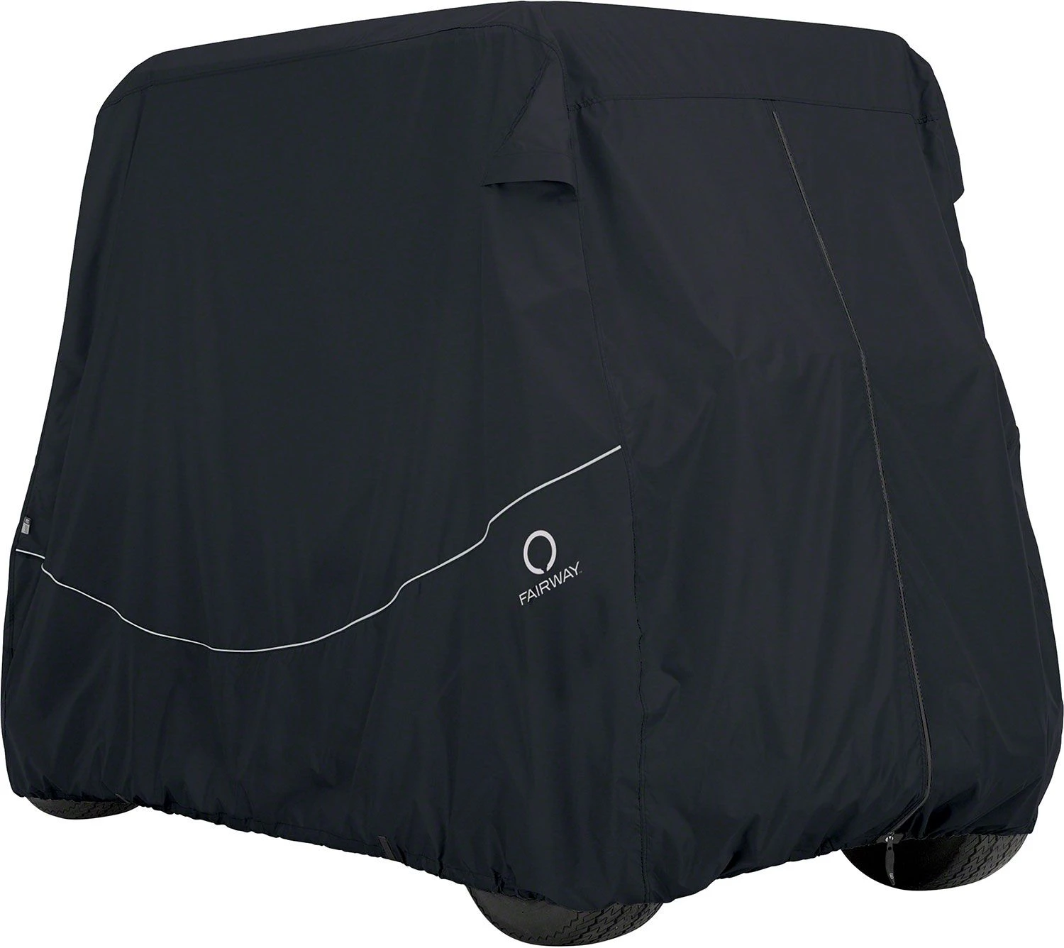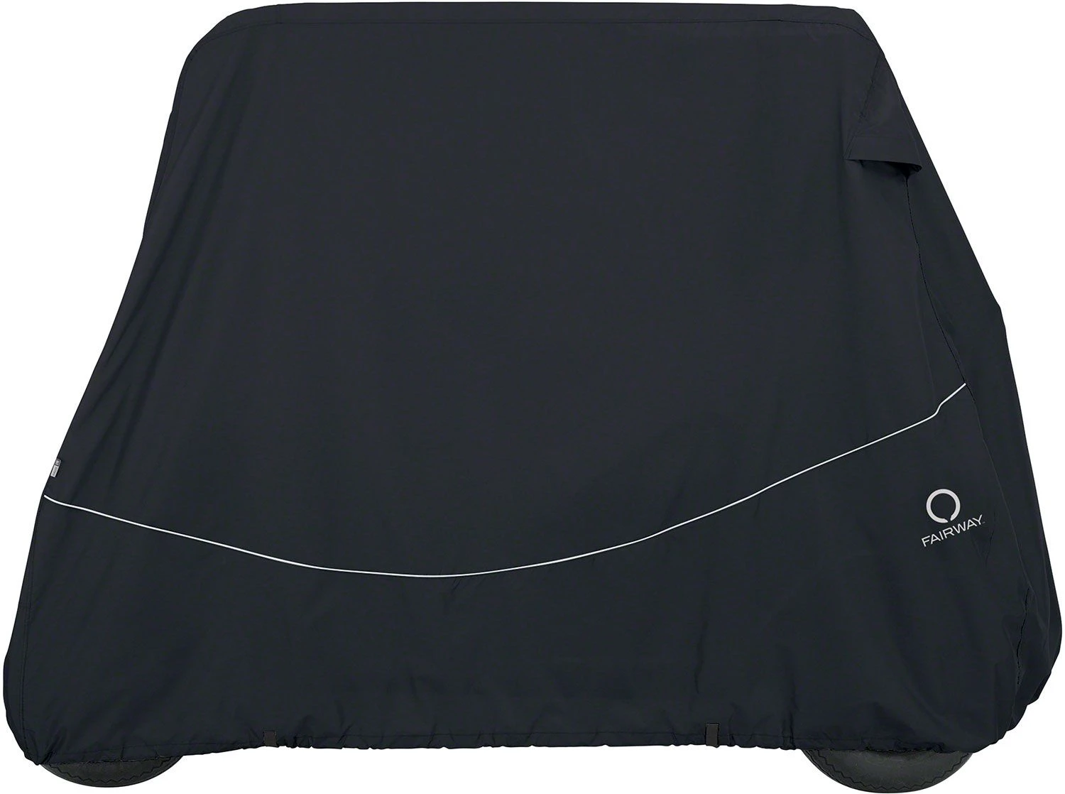 Create a barrier between your cart and the elements with a Fairway Quick-Fit Short Golf Cart Cover. Designed to fit most 2-person golf carts with short roofs, this cover features shrink- and stretch-resistant Weather Protected™ fabric for added durability. Numerous vents and access panels equipped with heavy-duty zippers allow unhindered access and ventilation while a Classic Accessories® Fairway Quick-Fit Cover is fixed to your cart.