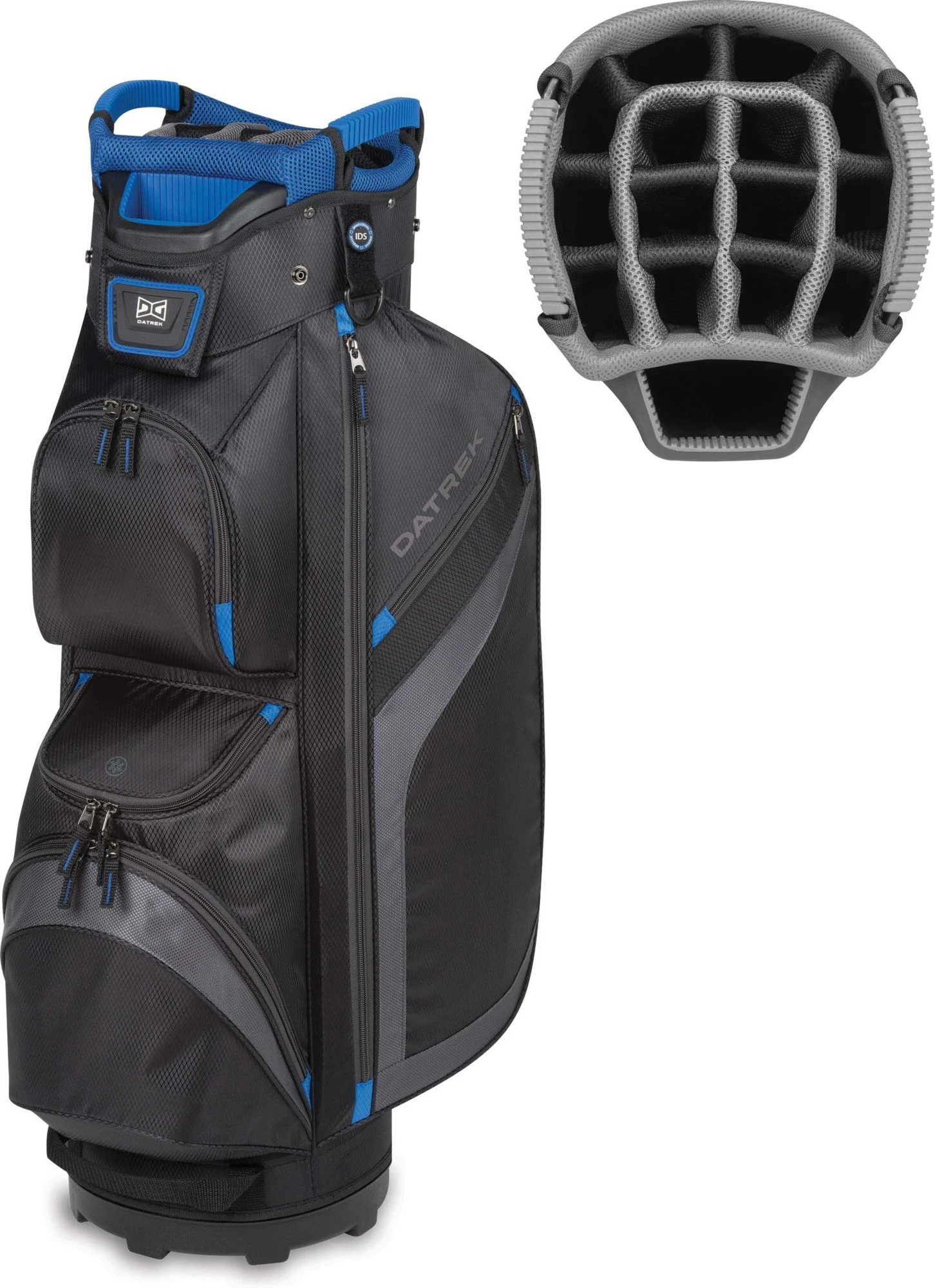 Experience the next generation of convenience with a DG Lite II Cart Bag. A larger 15-way top with individual full-length dividers allows for meticulous club organization. 7 total pockets, including 2 oversized apparel pockets and a fleece-lined valuables pocket, afford a place for all important on-course accessories. Numerous grab handles, a sling-style carry strap and rubberized cart base keep convenience at the forefront during your next ride.