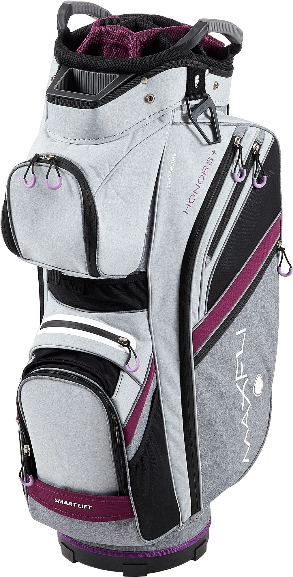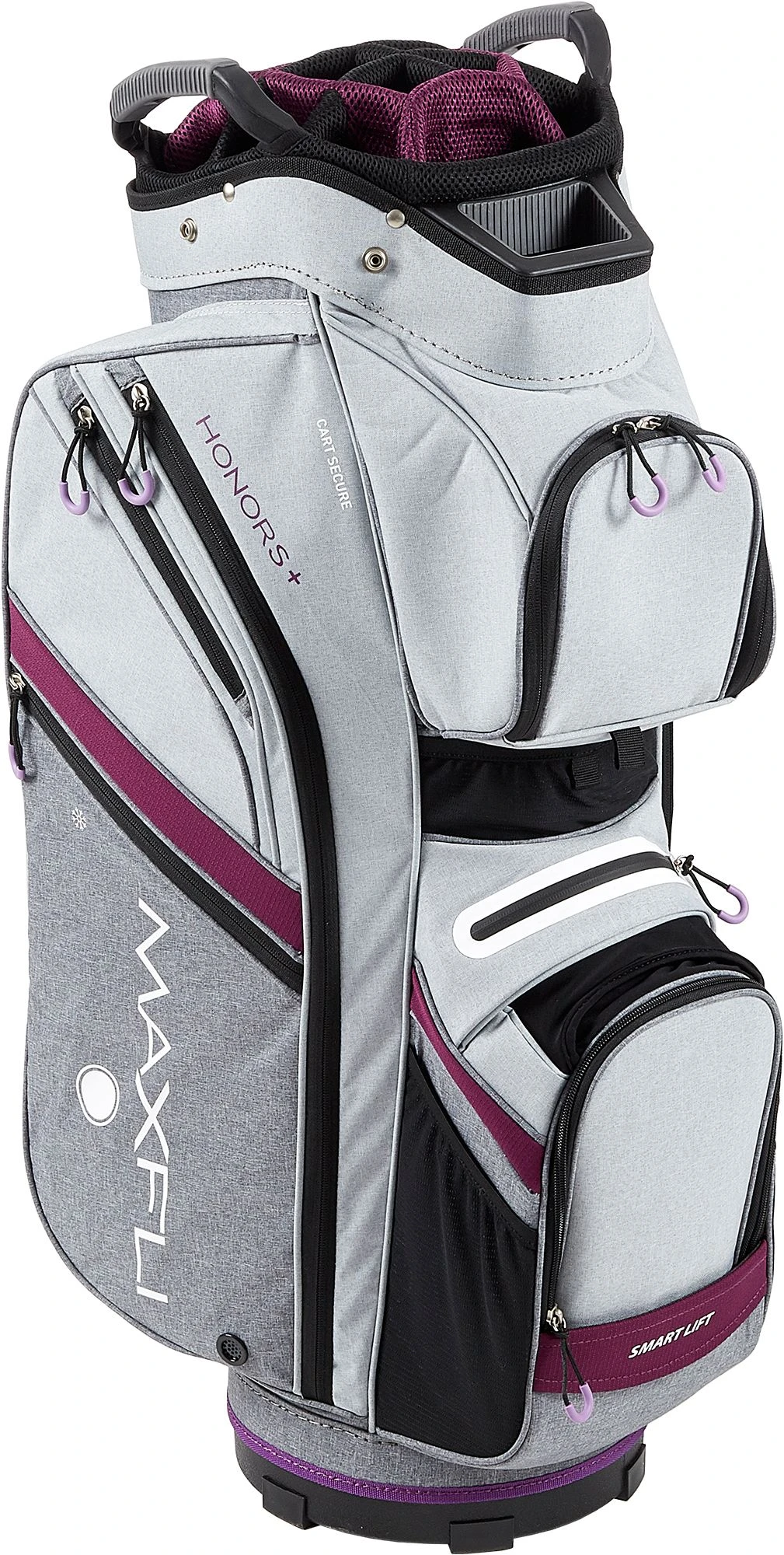 Keep yourself organized while taking care of your golf equipment with the Maxfli Women’s 2019 Honors Plus Cart Golf Bag. A 14-way top with 3 full-length dividers provides maximum club organization and protection. The bag features an interior valuables dry pocket, fully-insulated cooler pocket, and it provides plenty of secure and easily accessible storage for all of your course needs. You’ll get plenty of versatility and convenience with the Maxfli Honors Plus Cart Golf Bag.