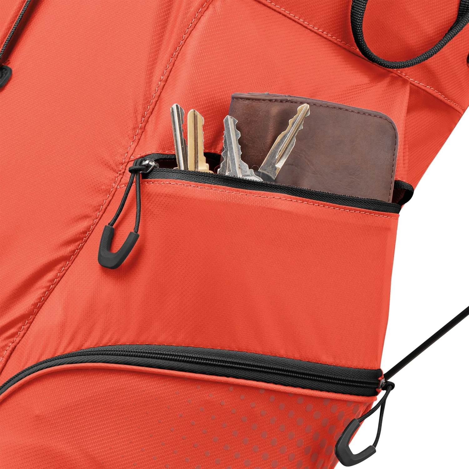Bring lightweight convenience to your next round with the TaylorMade LiteTech 3.0 Stand Bag. Constructed of lightweight, 75-denier thin-tuff fabric, the LiteTech 3.0 features a 5-way top with full-length dividers for club organization. 6 pockets – including full-size side pockets and a micro suede lined valuables pocket – afford a secure place for on-course essentials.