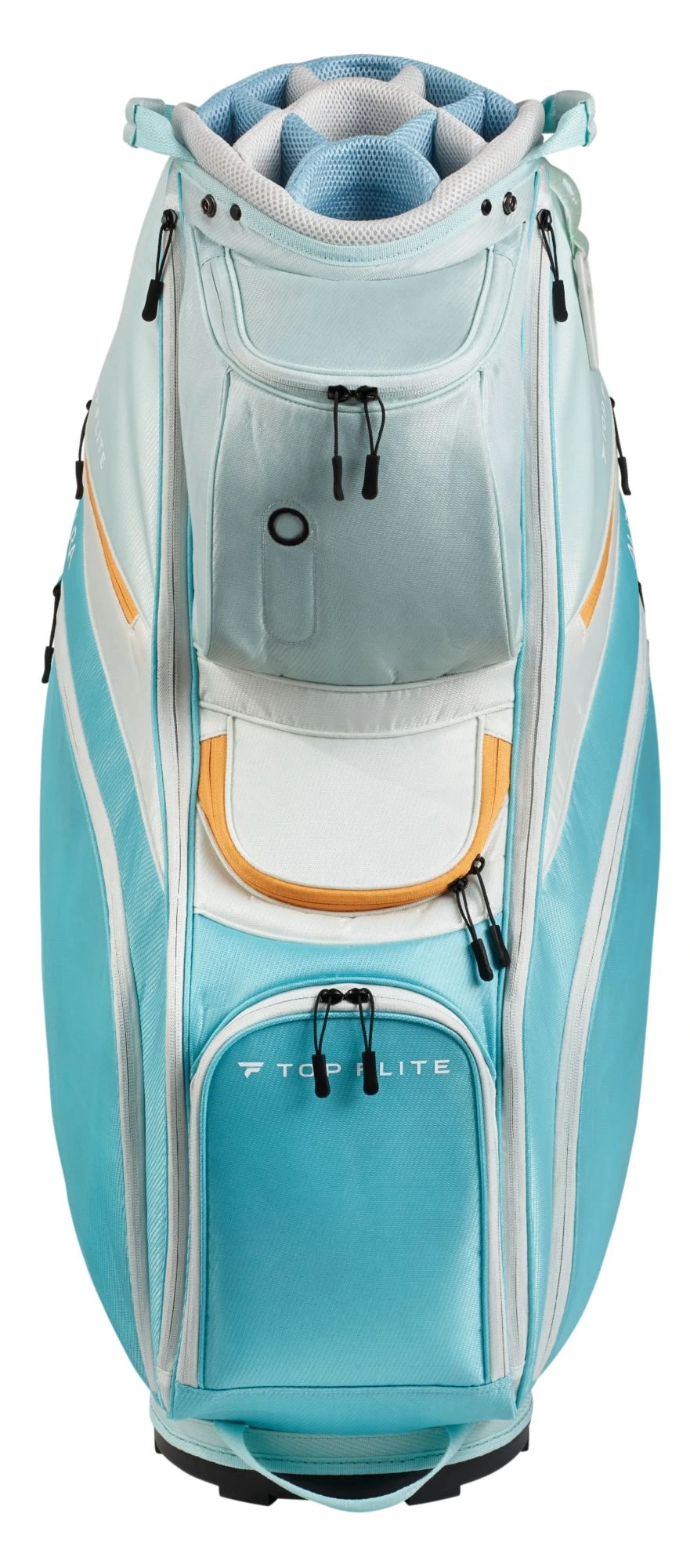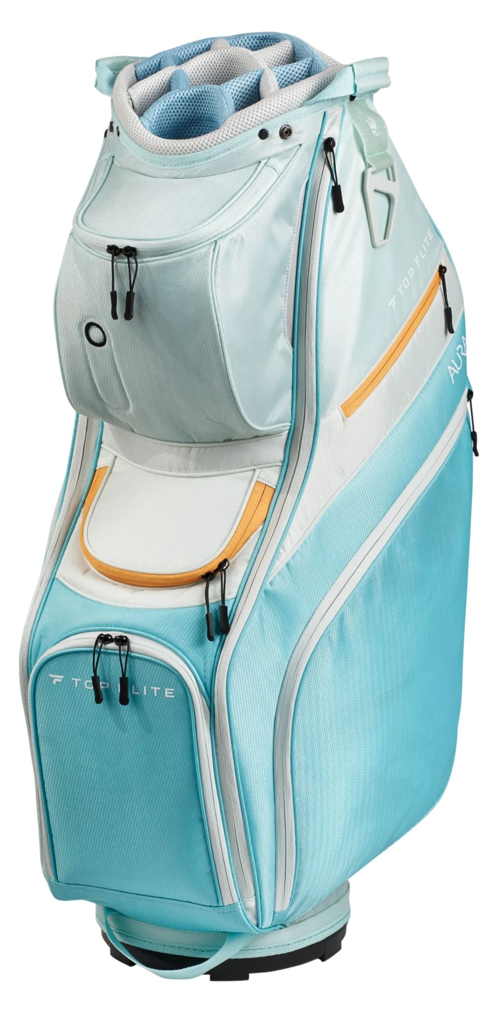 Protect your equipment and stay organized on the course with the Top Flite Womenโs Aura Golf Cart bag. A 14-way padded divider keeps your clubs separated and protected as you drive through the course. Nine pockets provide you with plenty of storage space for all of your course accessories, and the bag is designed to be easily accessible while strapped into your cart. Make your day on the course a little easier with the Top Flite Aura Golf Cart Bag.