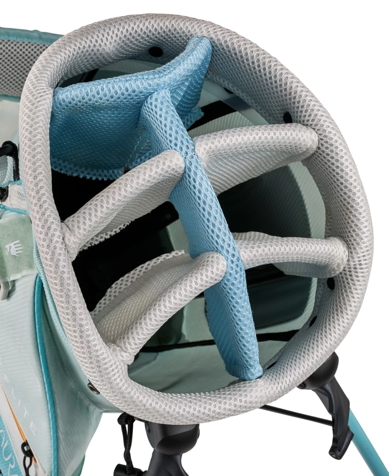 Walk the course comfortably with the Top Flite Women’s Aura Golf Stand Bag. A 7-way padded divider keeps your clubs organized while 7 pockets hold all of your golf course needs. With easy access scorecard and pencil slots, you’ll have all of the convenience you need with the Top Flite Aura Golf Stand Bag.