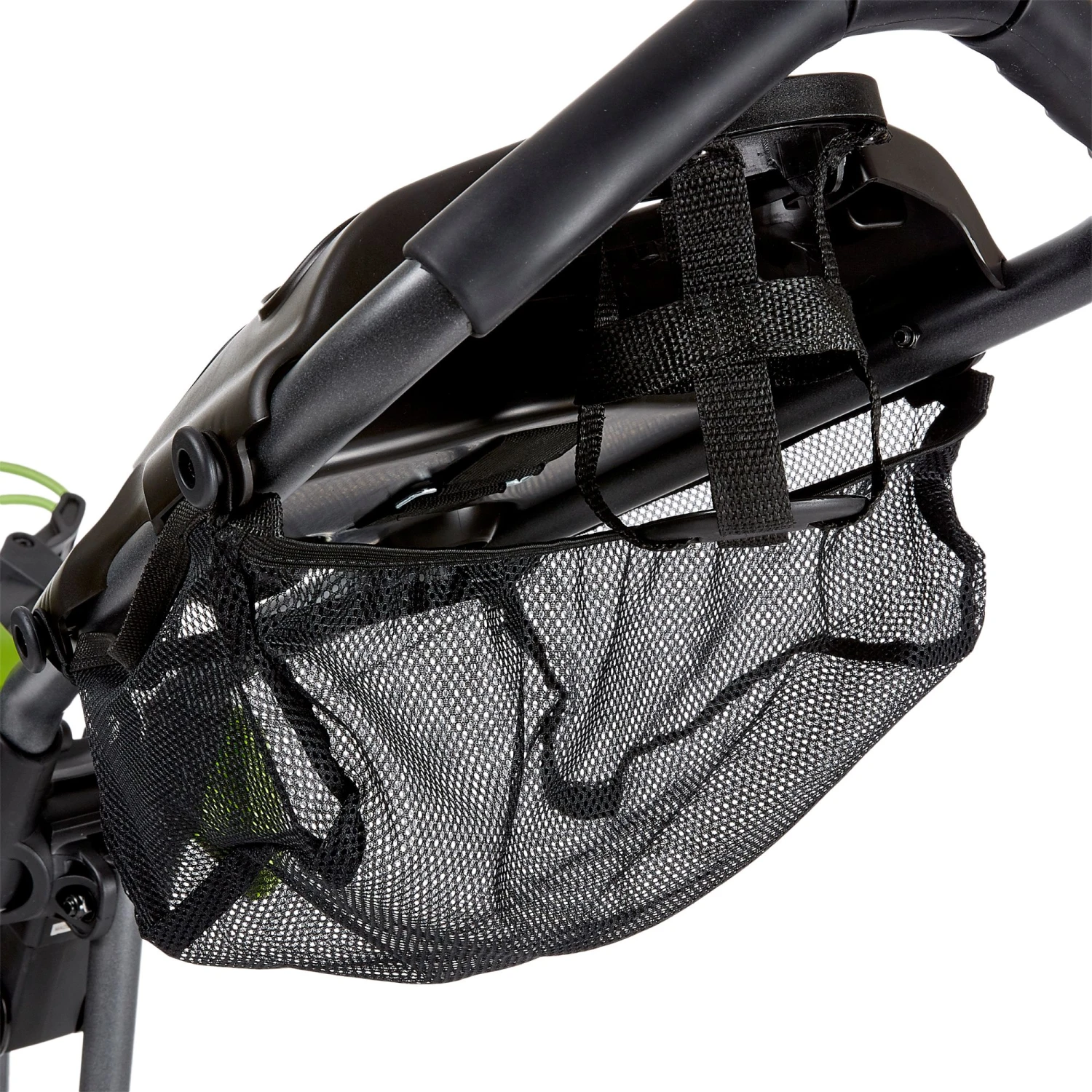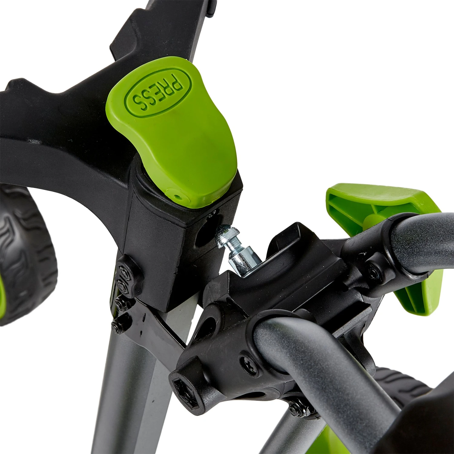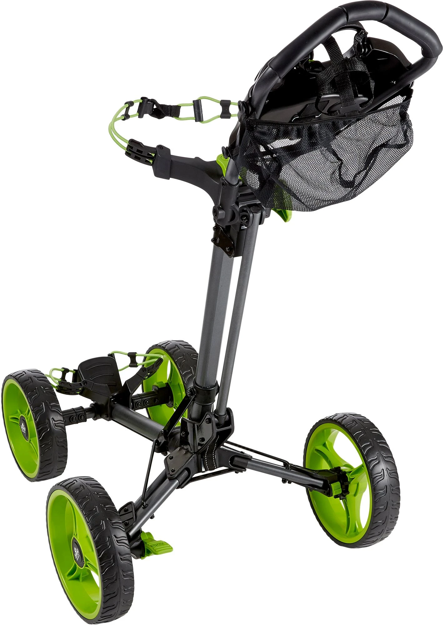 Navigate the course in style with the Tour Trek 2018 One-Click 4-Wheel Push Cart. A sturdy metal frame with high strength support cables and 4 oversized wheels allow you to get from tee to green with maximum stability.